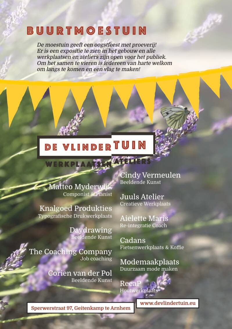Voor de vierde keer wordt op 16 september van 12:00-16:00 in- en om de Vlindertuin, aan de Sperwerstraat 97, Arnhem een open dag en oogstfeest gehouden. De open dag is een initiatief van de huurders van het pand zitten en het oogstfeest wordt georganiseerd de moestuin en kindermoestuin.
